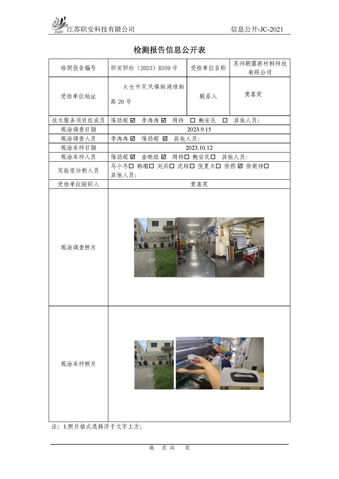 檢測報告公示