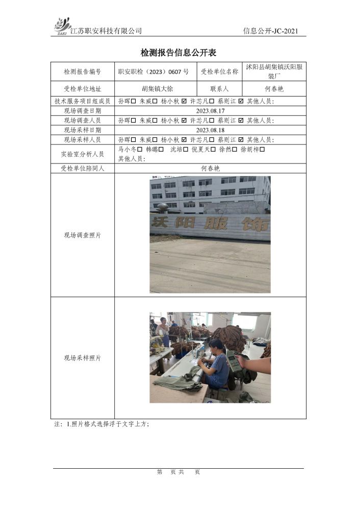檢測報告公示