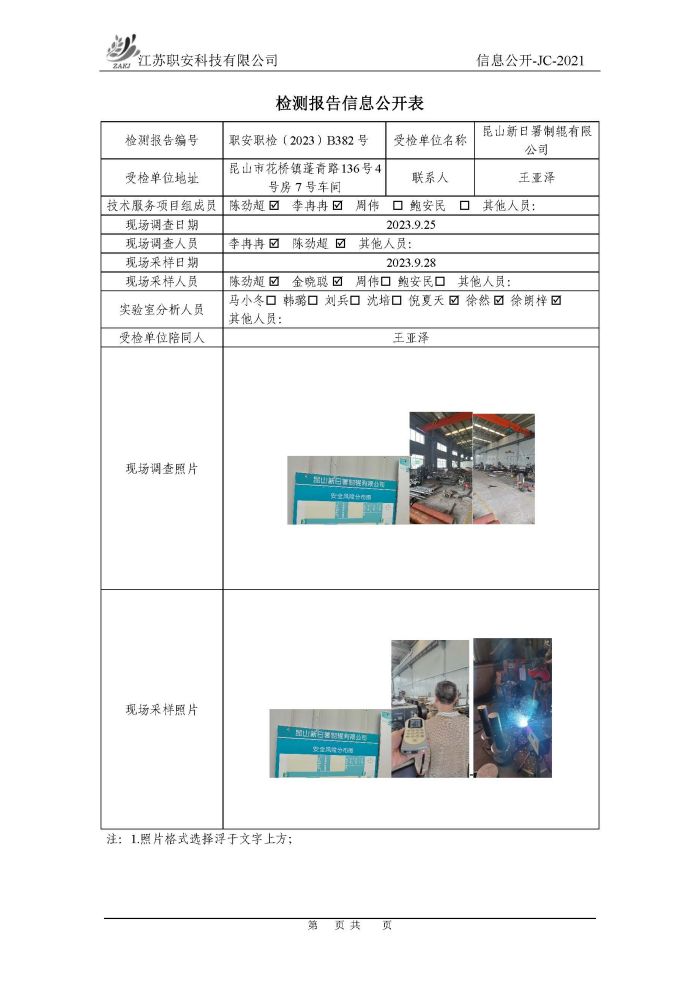 檢測報告公示