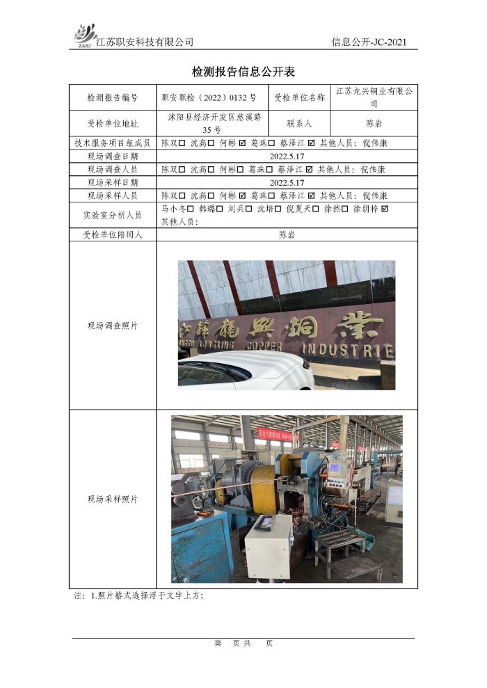 檢測報告公示
