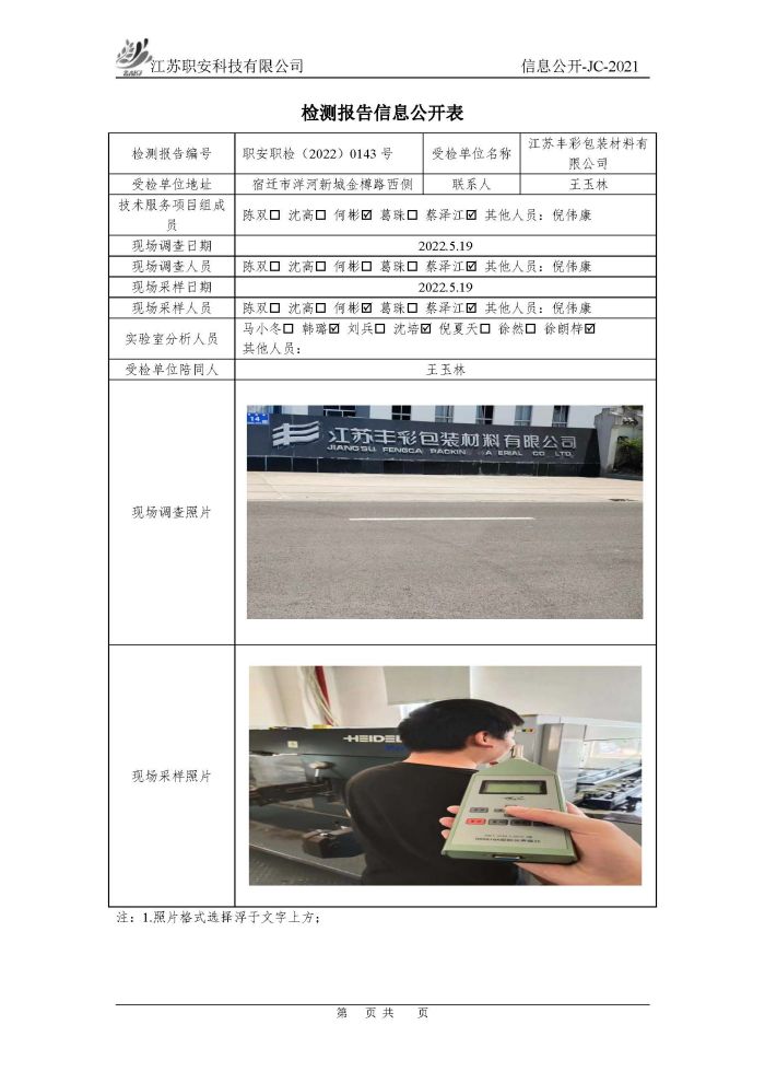 檢測報告公示