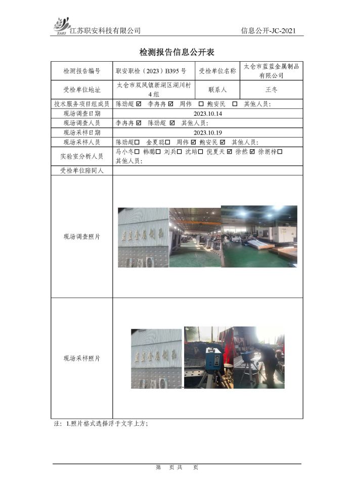 檢測報告公示