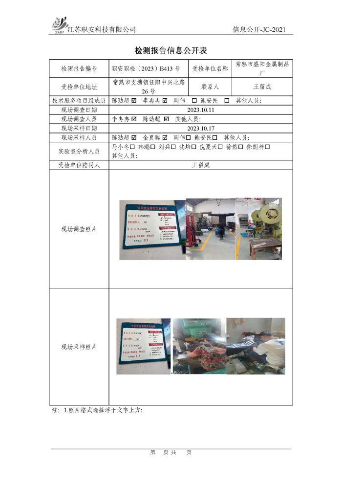 檢測報告公示