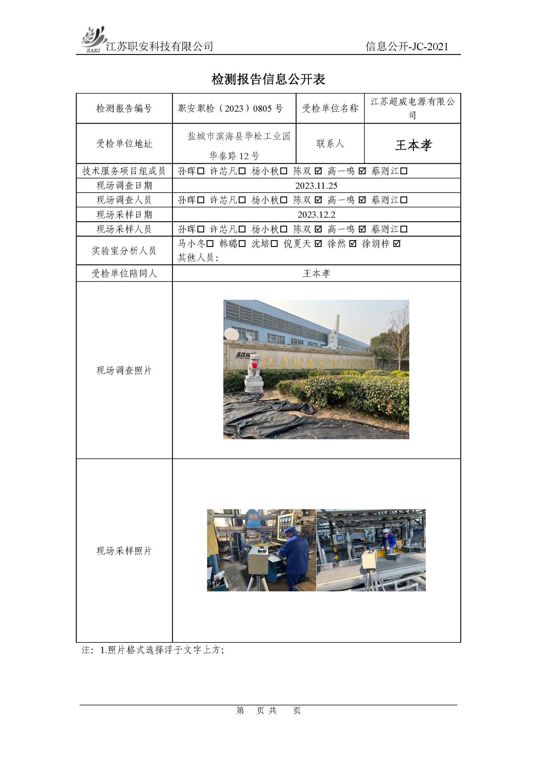檢測報告公示