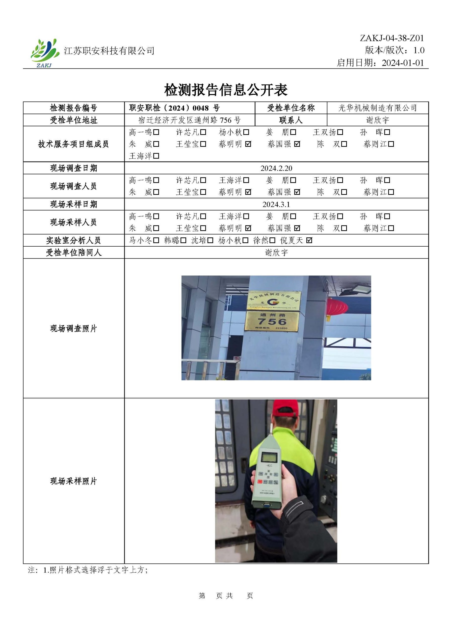 檢測報告公示