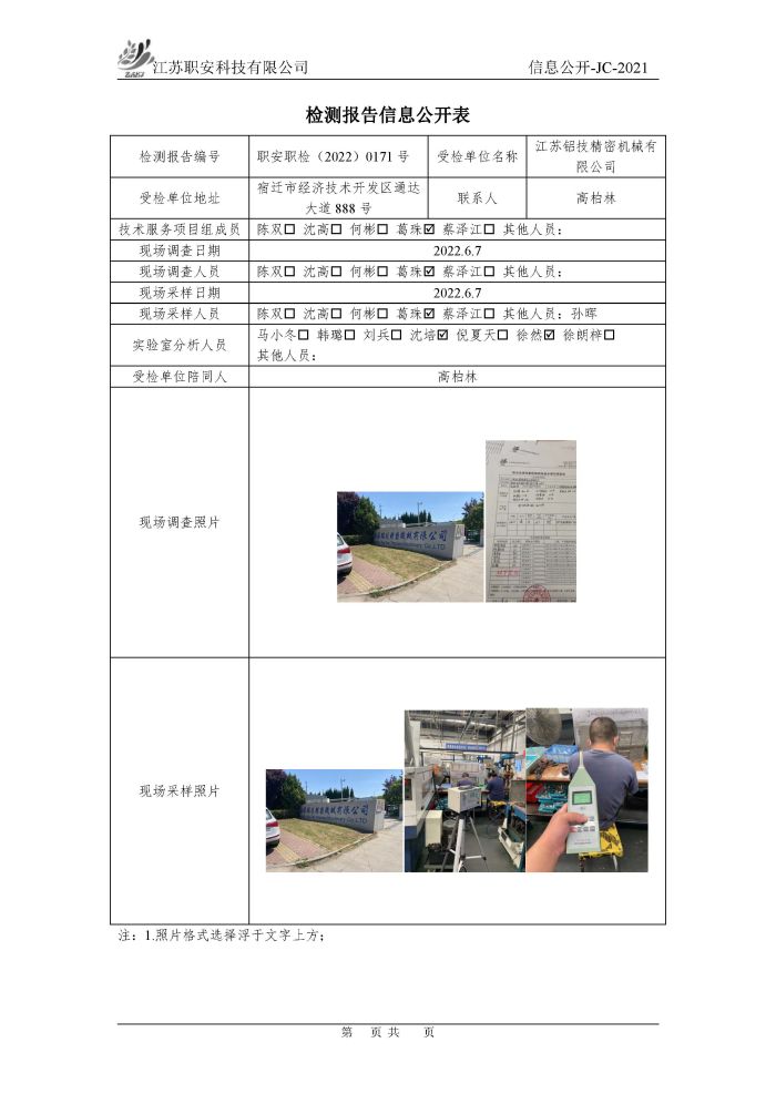 檢測報告公示
