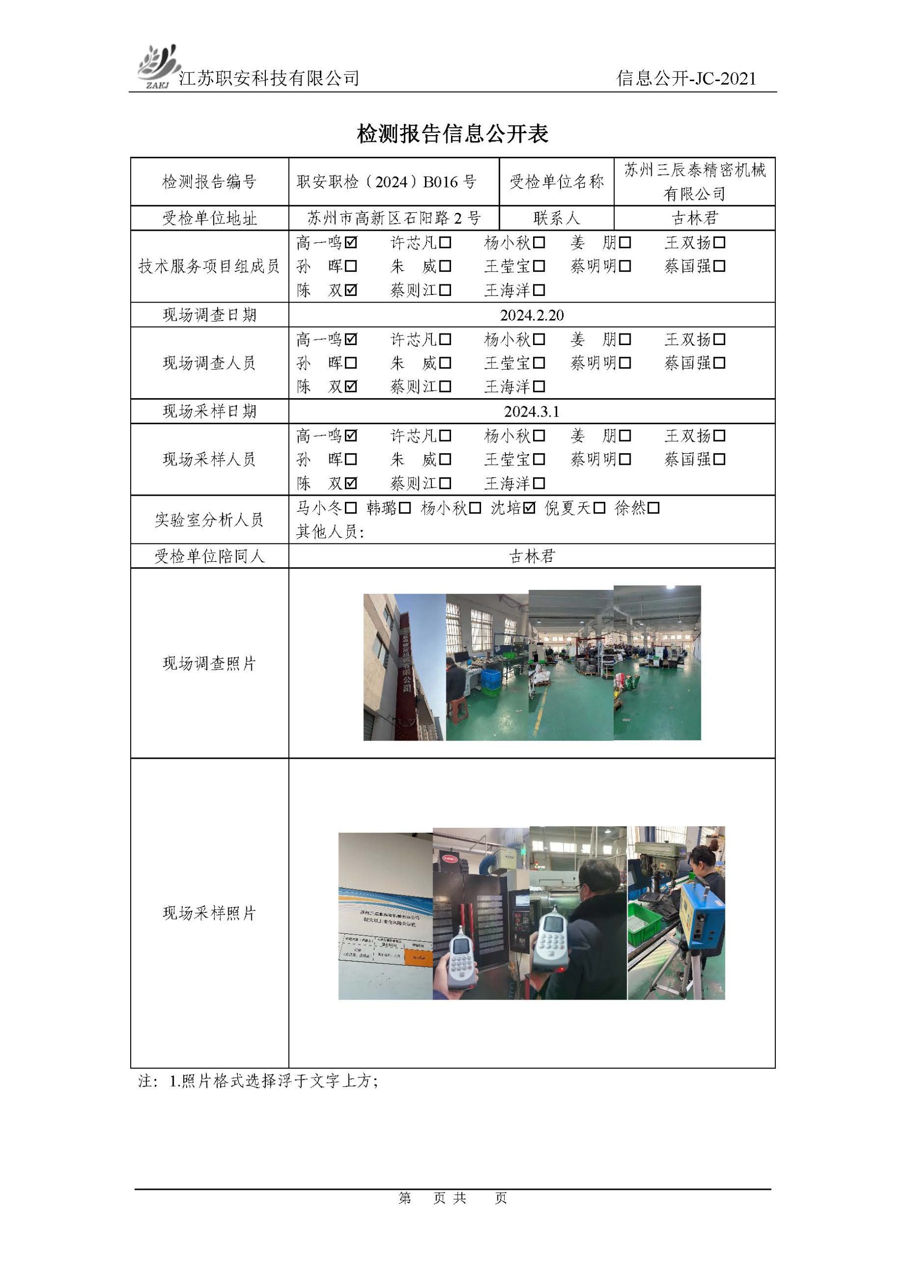 檢測報告公示