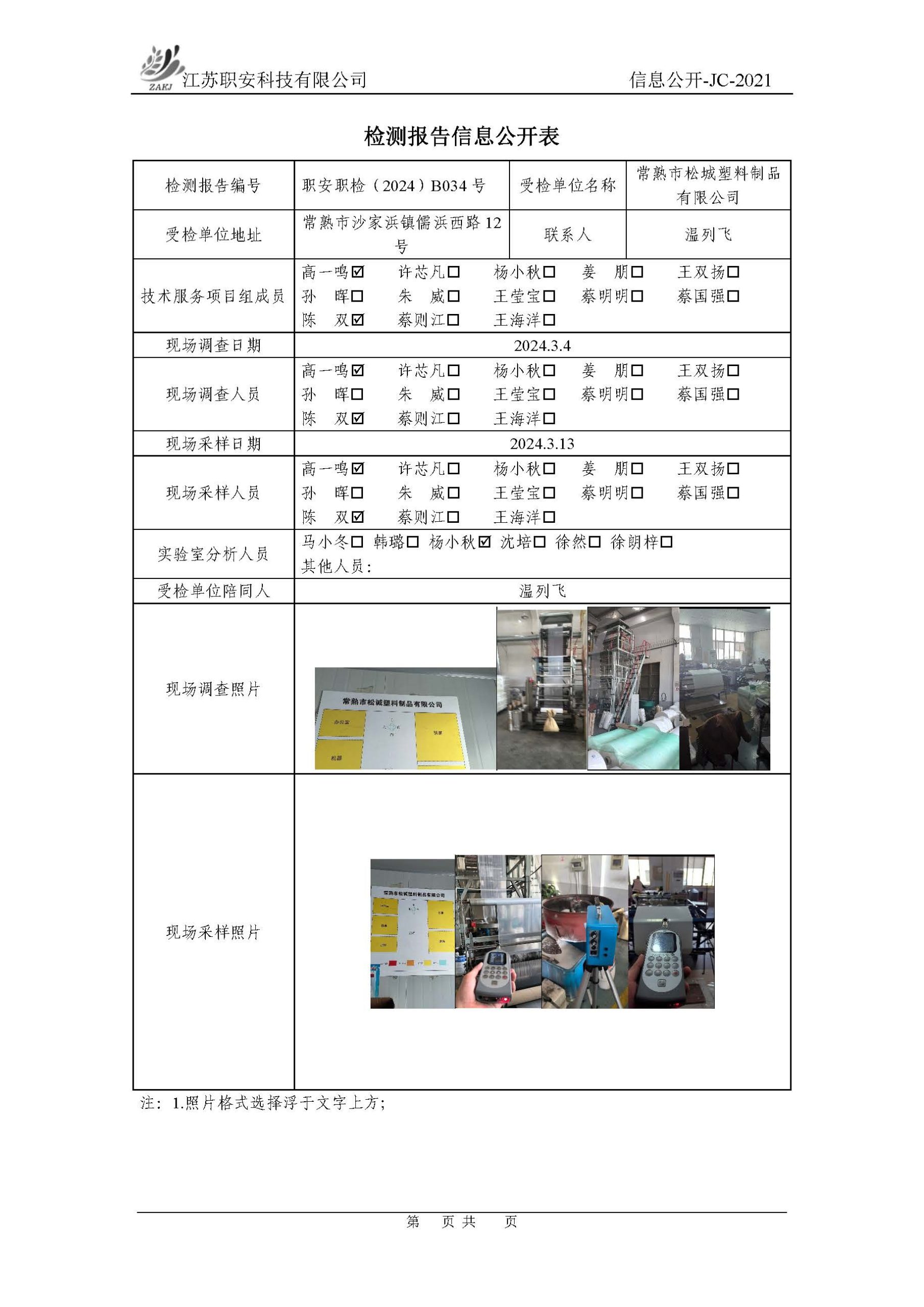 檢測報告公示