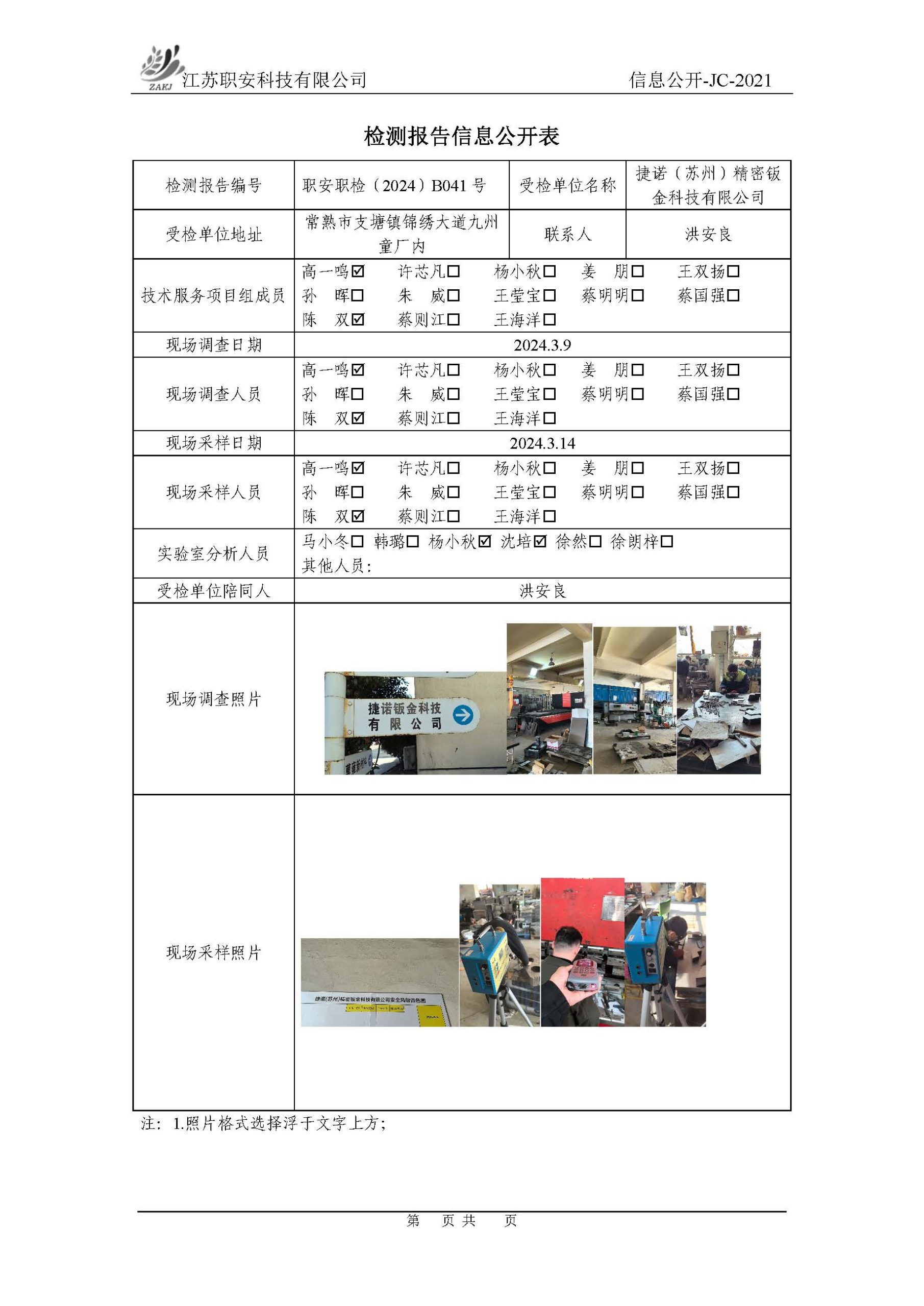 檢測報告公示