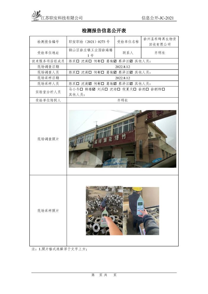 檢測報告公示