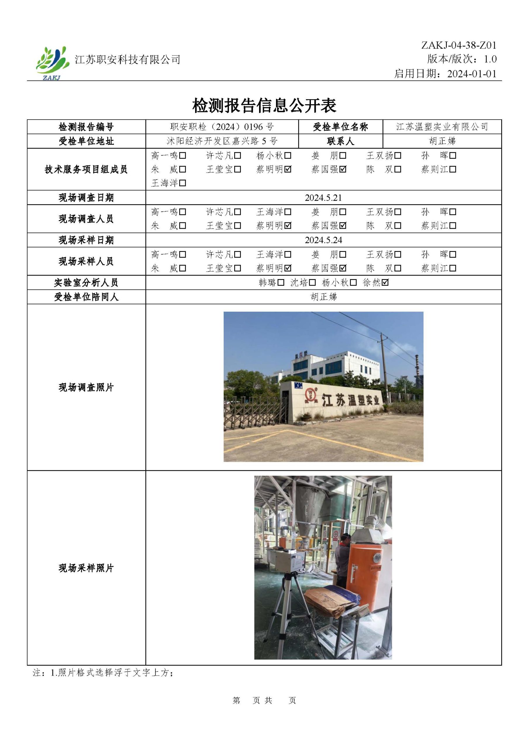 檢測報告公示
