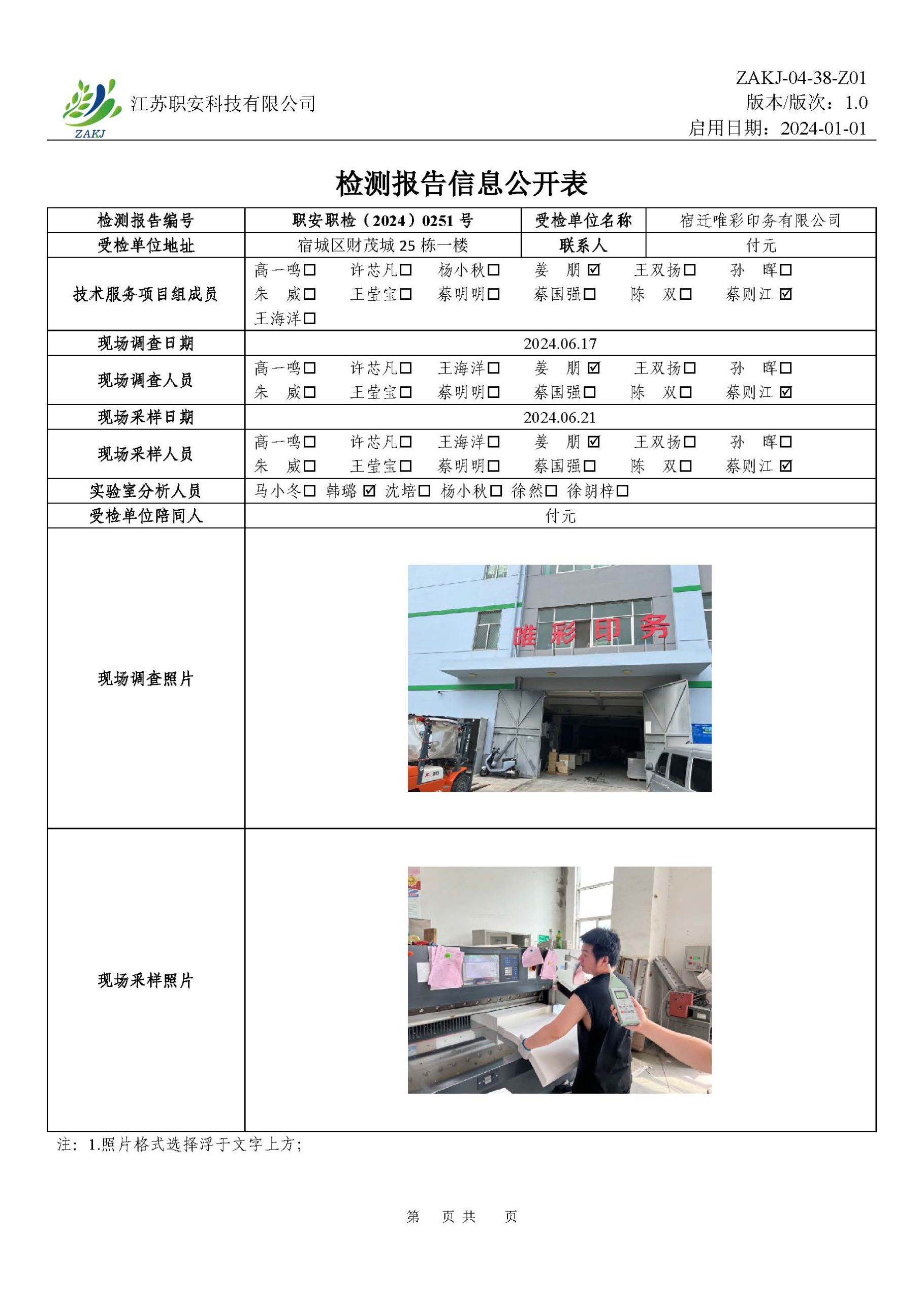 檢測報告公示