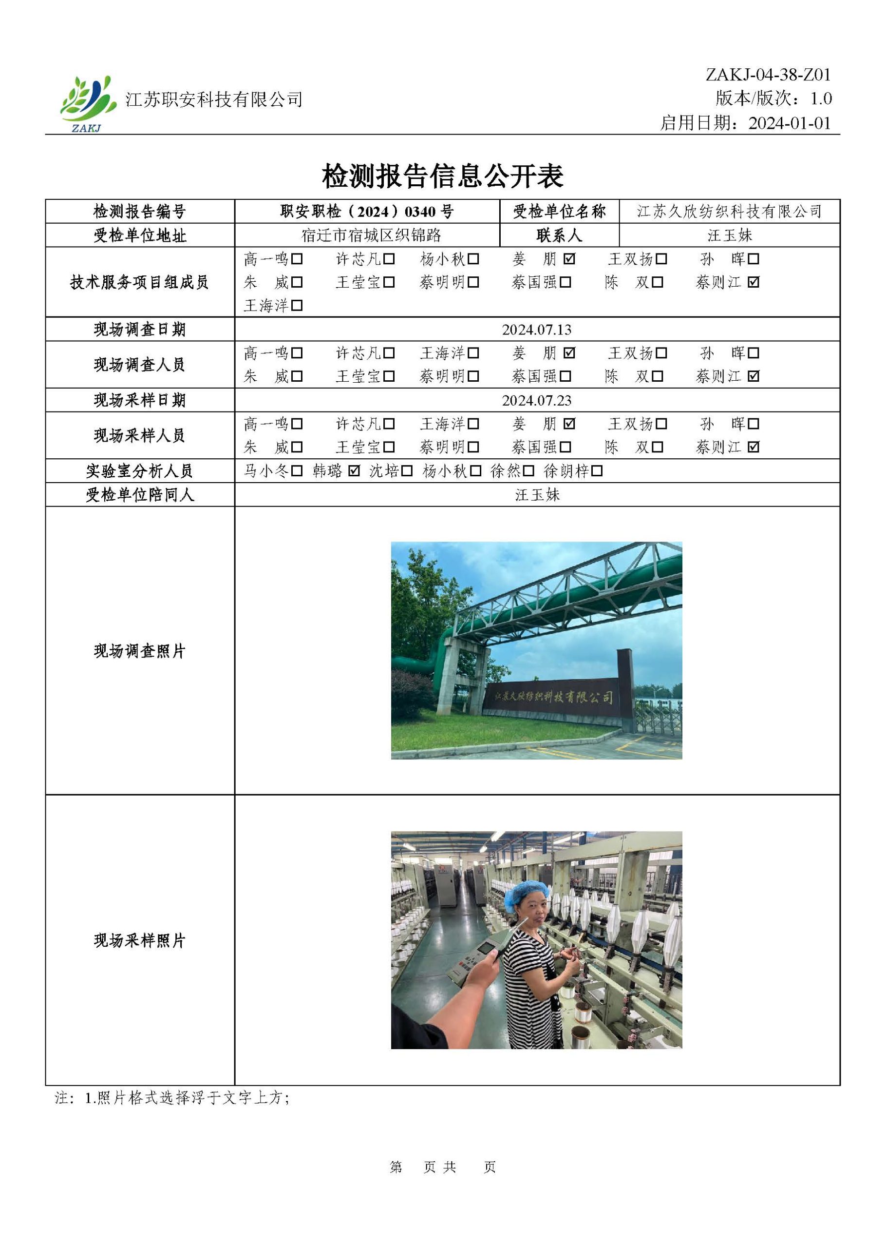 檢測報告公示