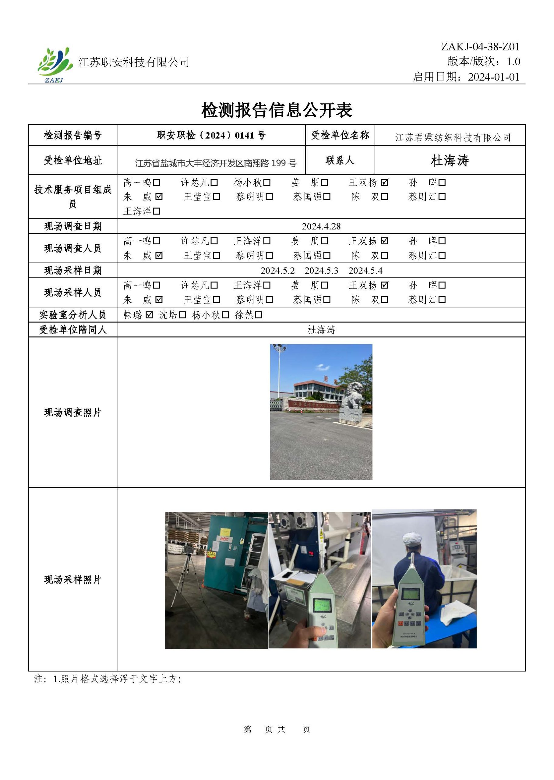 檢測報告公示