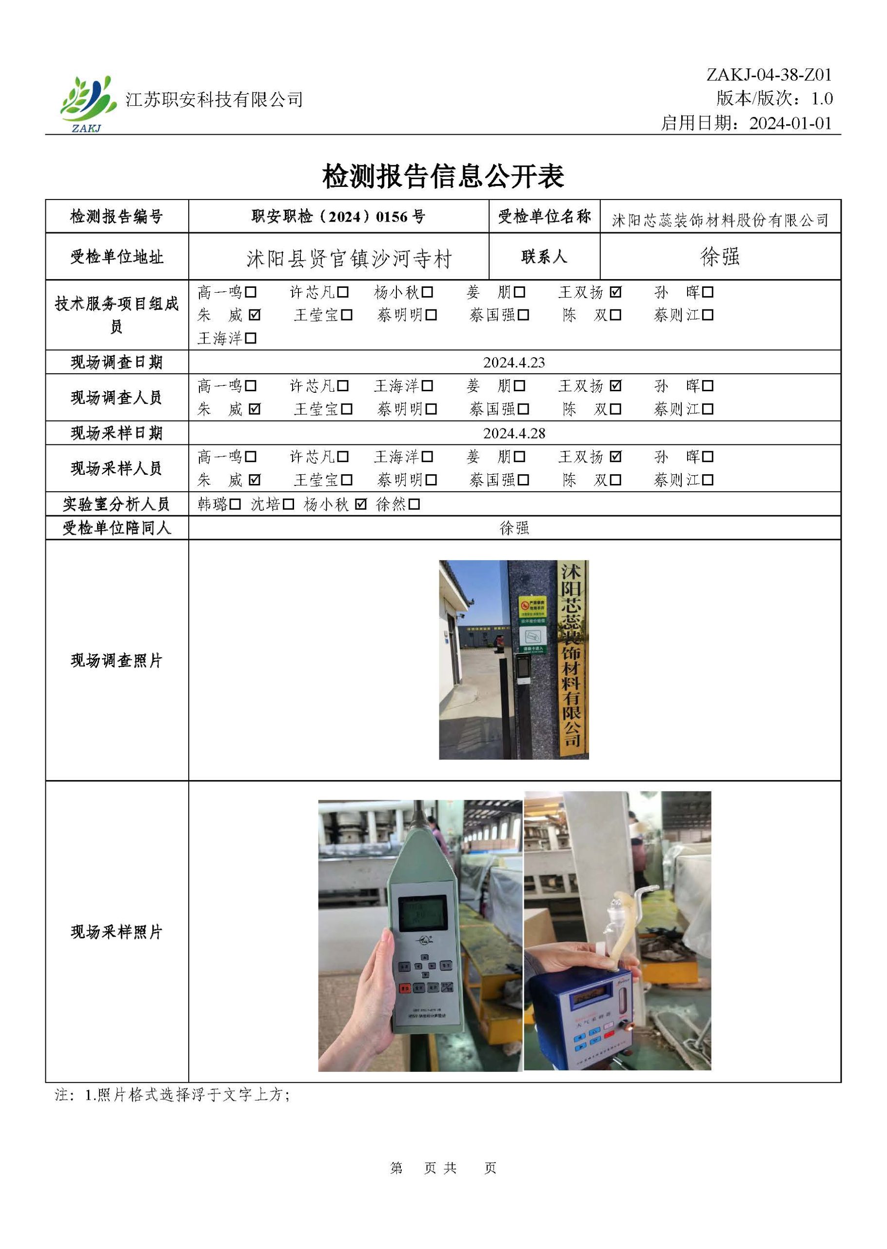 檢測報告公示