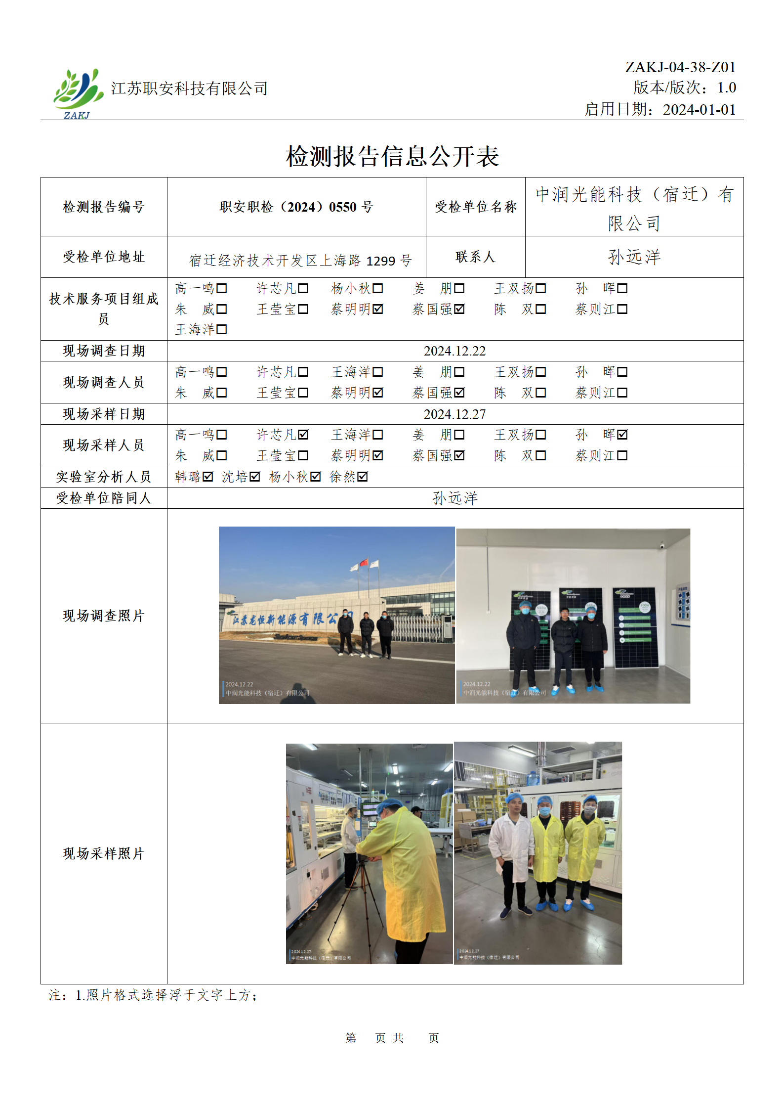 檢測報告公示