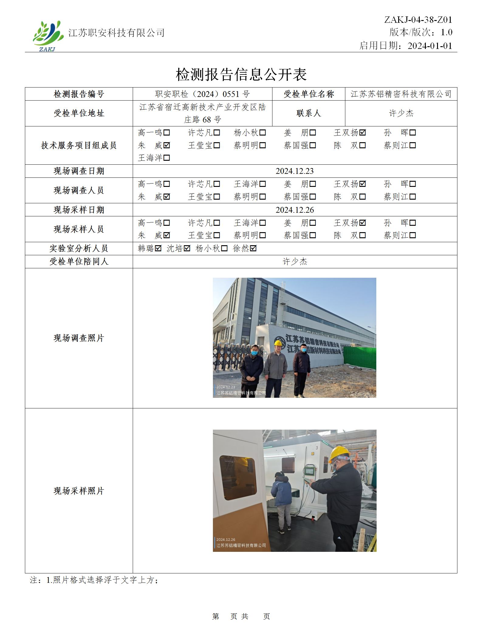 檢測報告公示