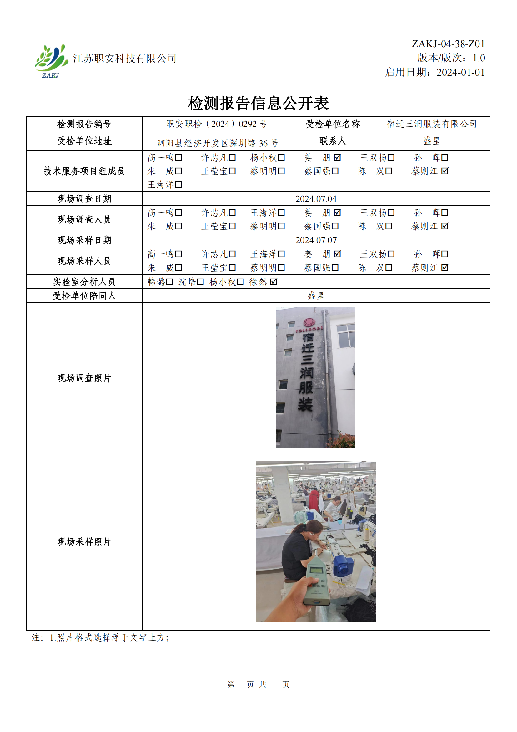 檢測報告公示