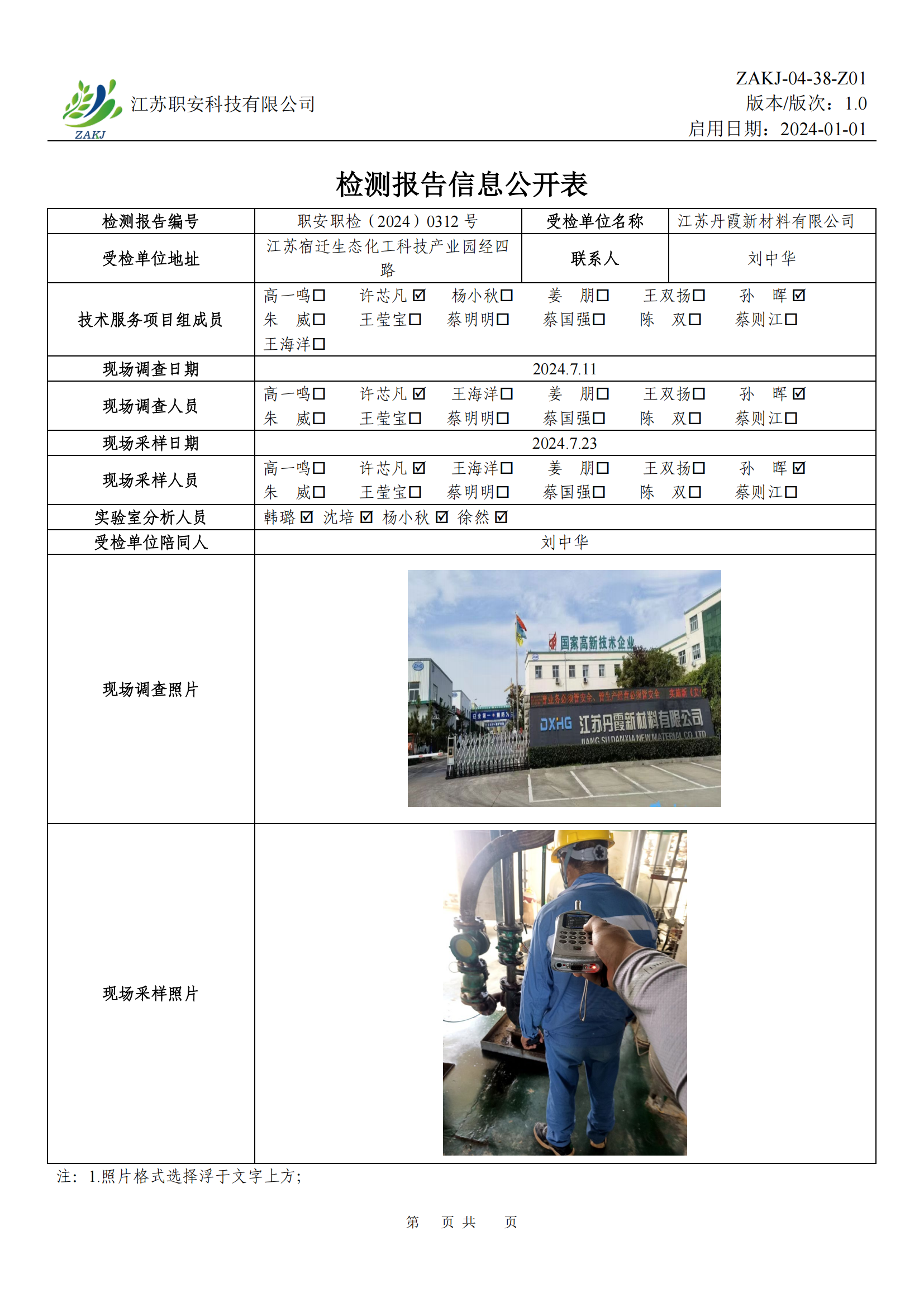 檢測報告公示