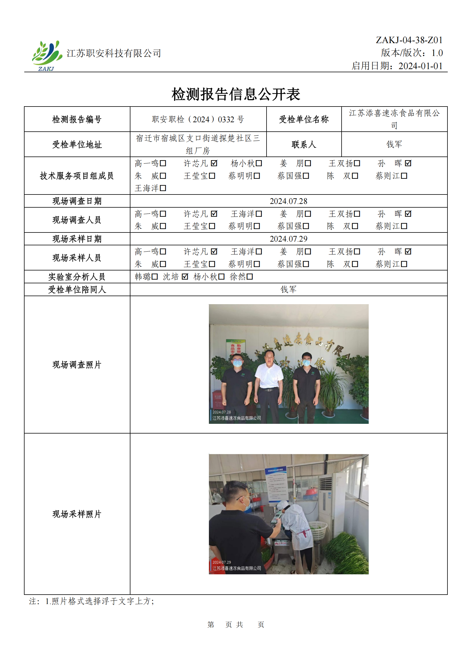 檢測報告公示