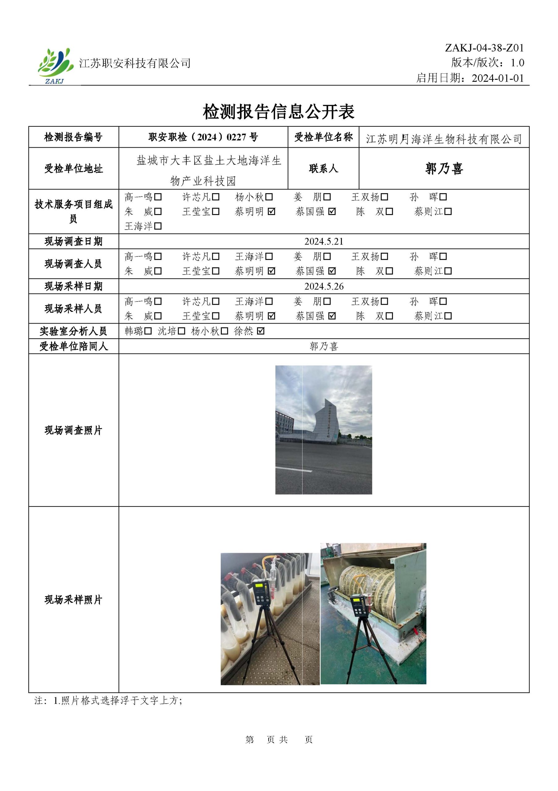 檢測報告公示