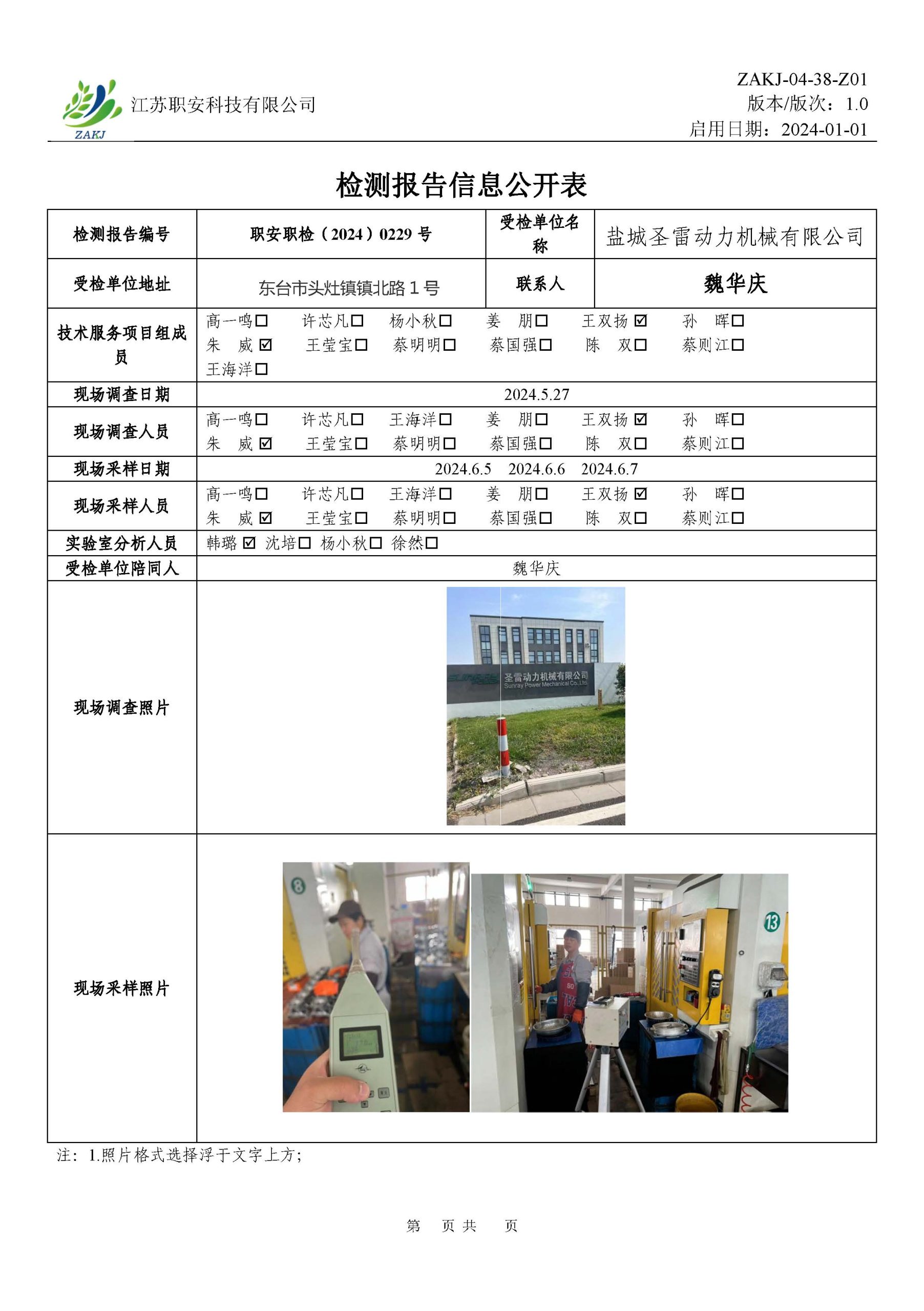 檢測報告公示