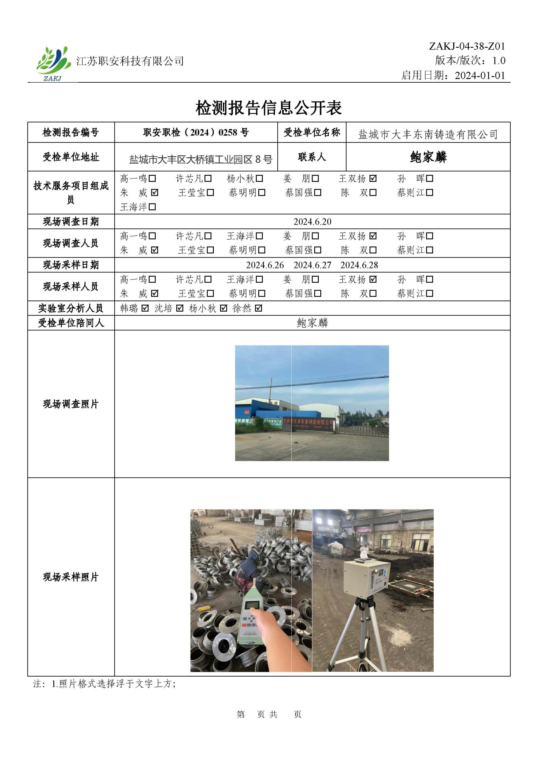 檢測報告公示