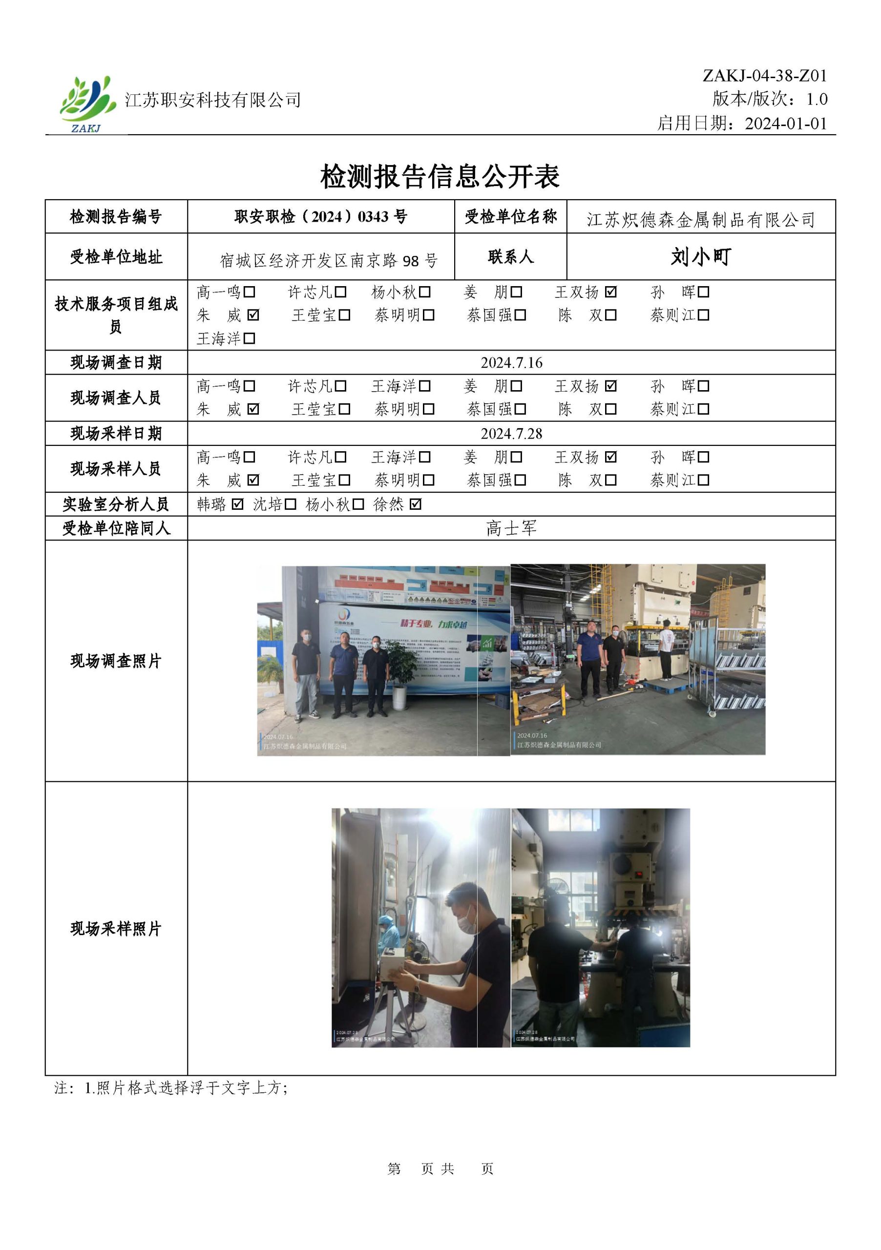 檢測報告公示
