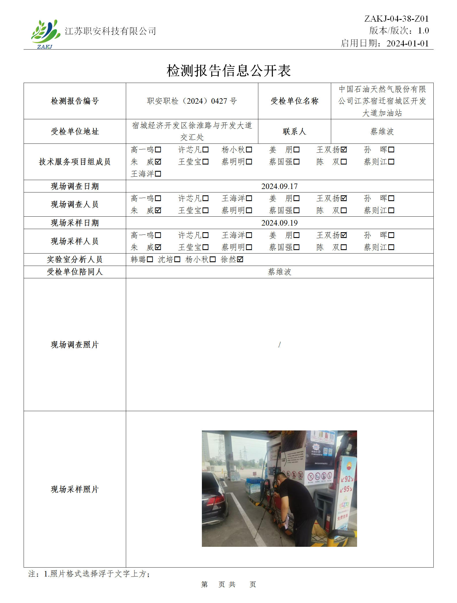 檢測報告公示