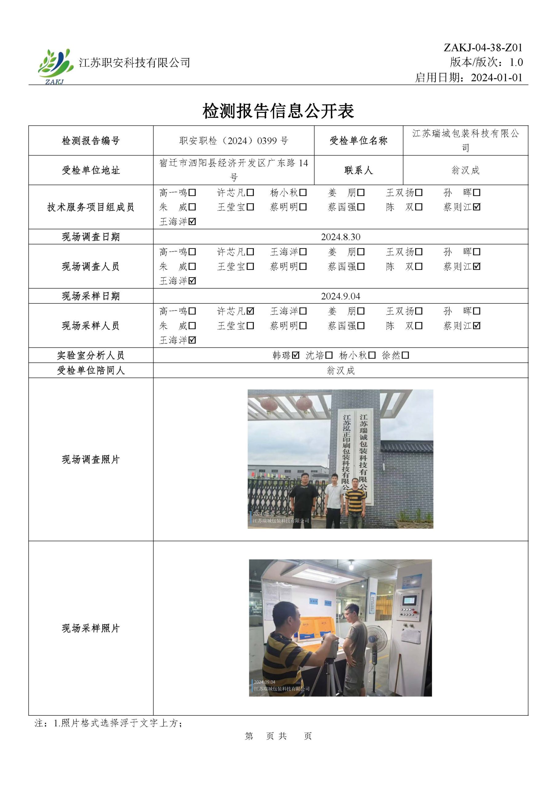 檢測報告公示