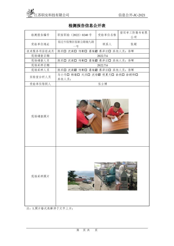 檢測報告公示