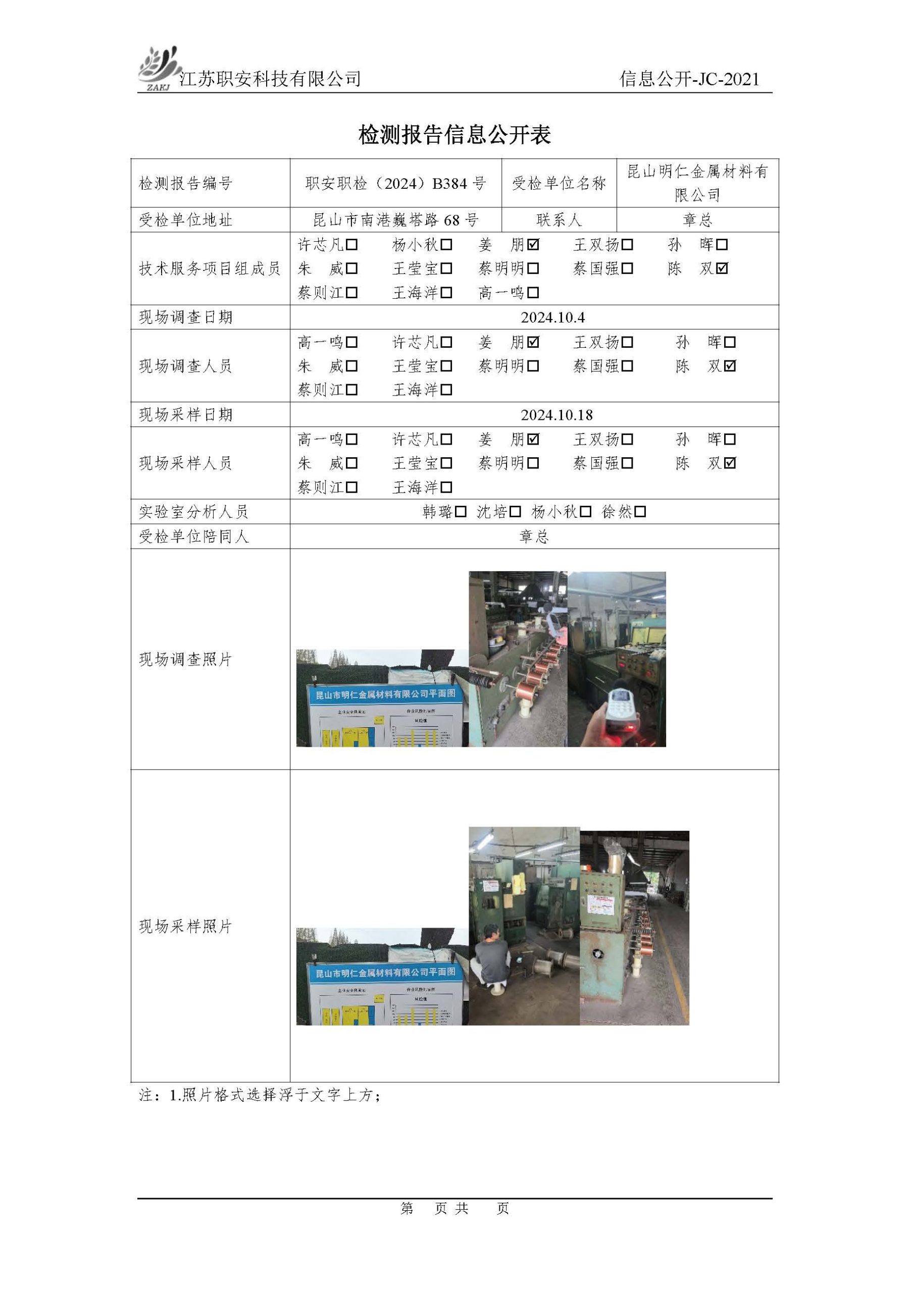 檢測報告公示