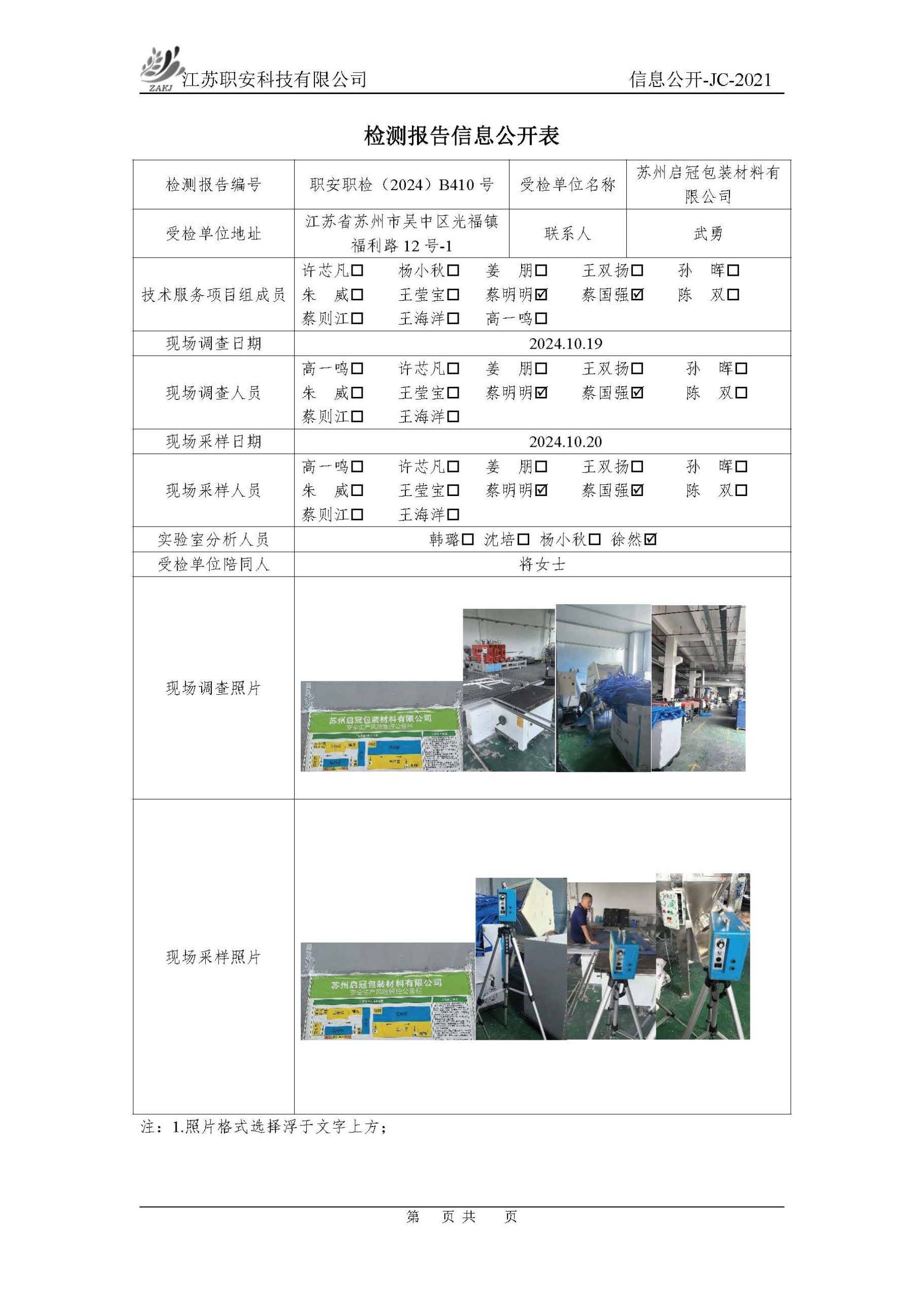檢測報告公示