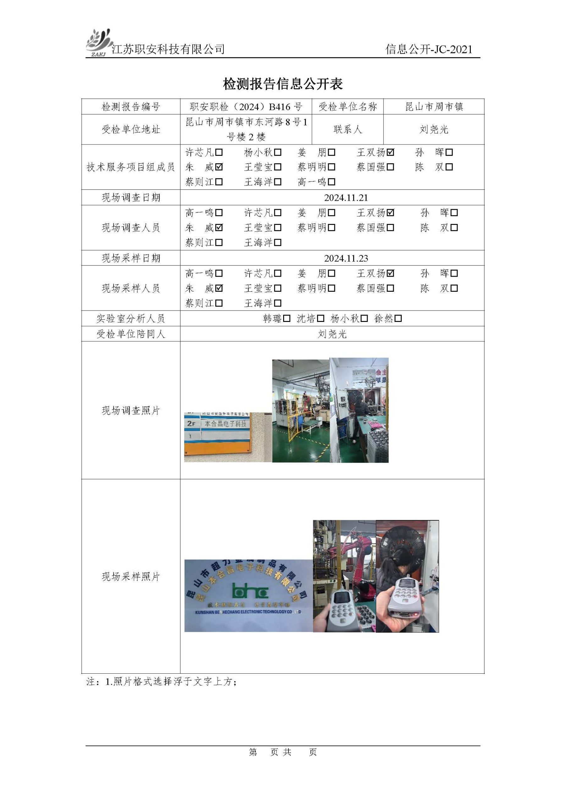 檢測報告公示