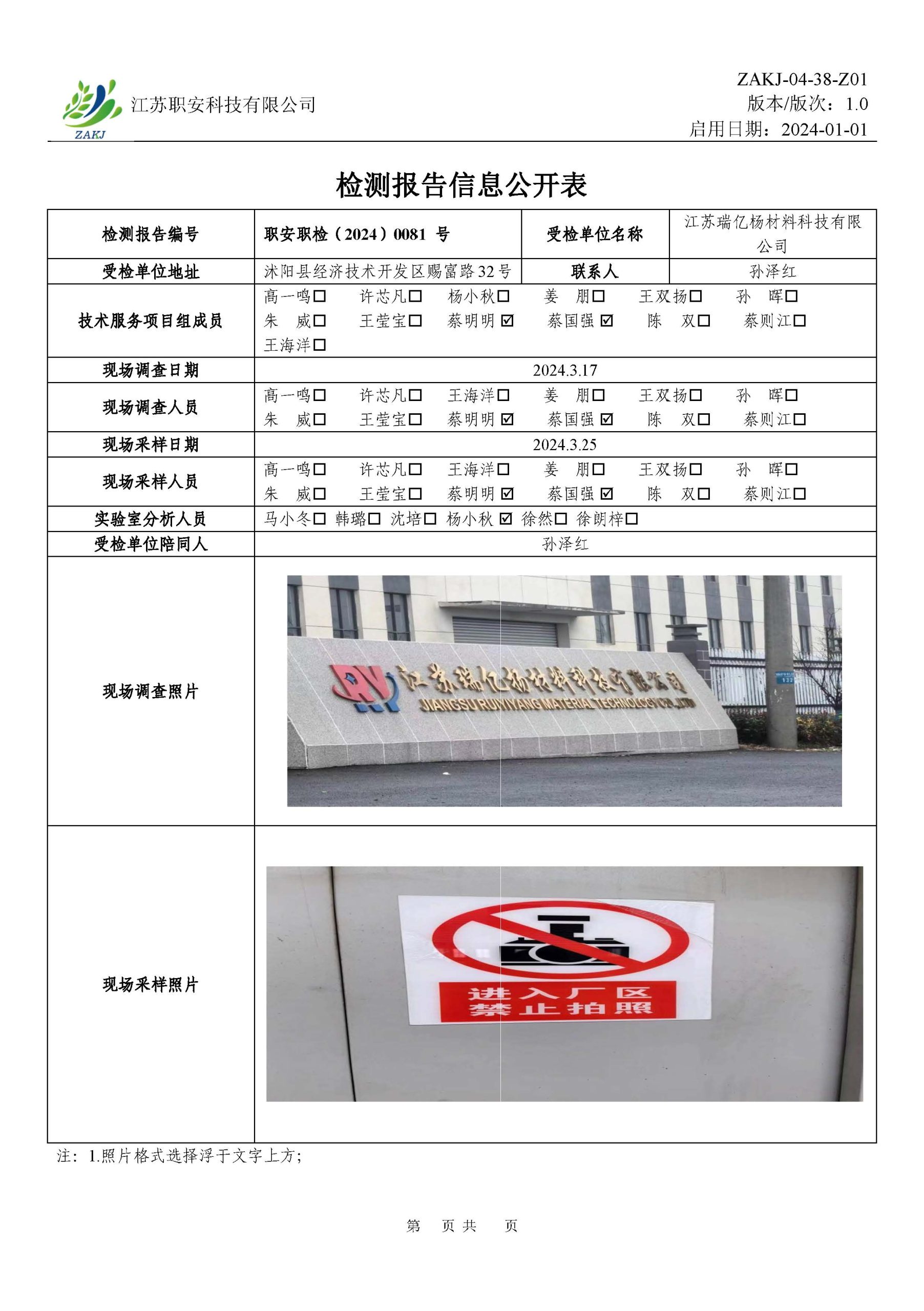 檢測報告公示