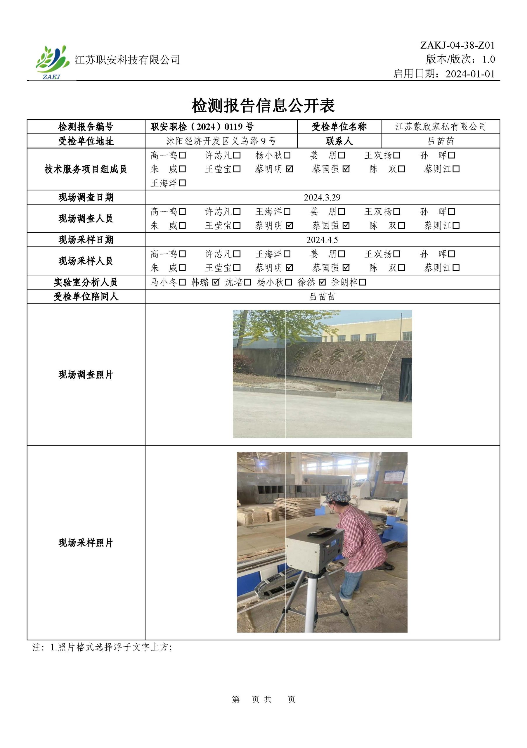 檢測報告公示