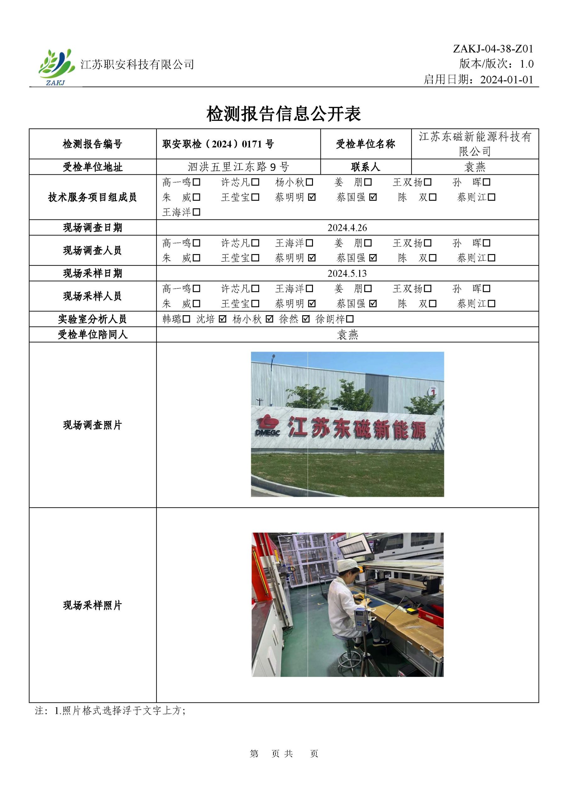 檢測報告公示