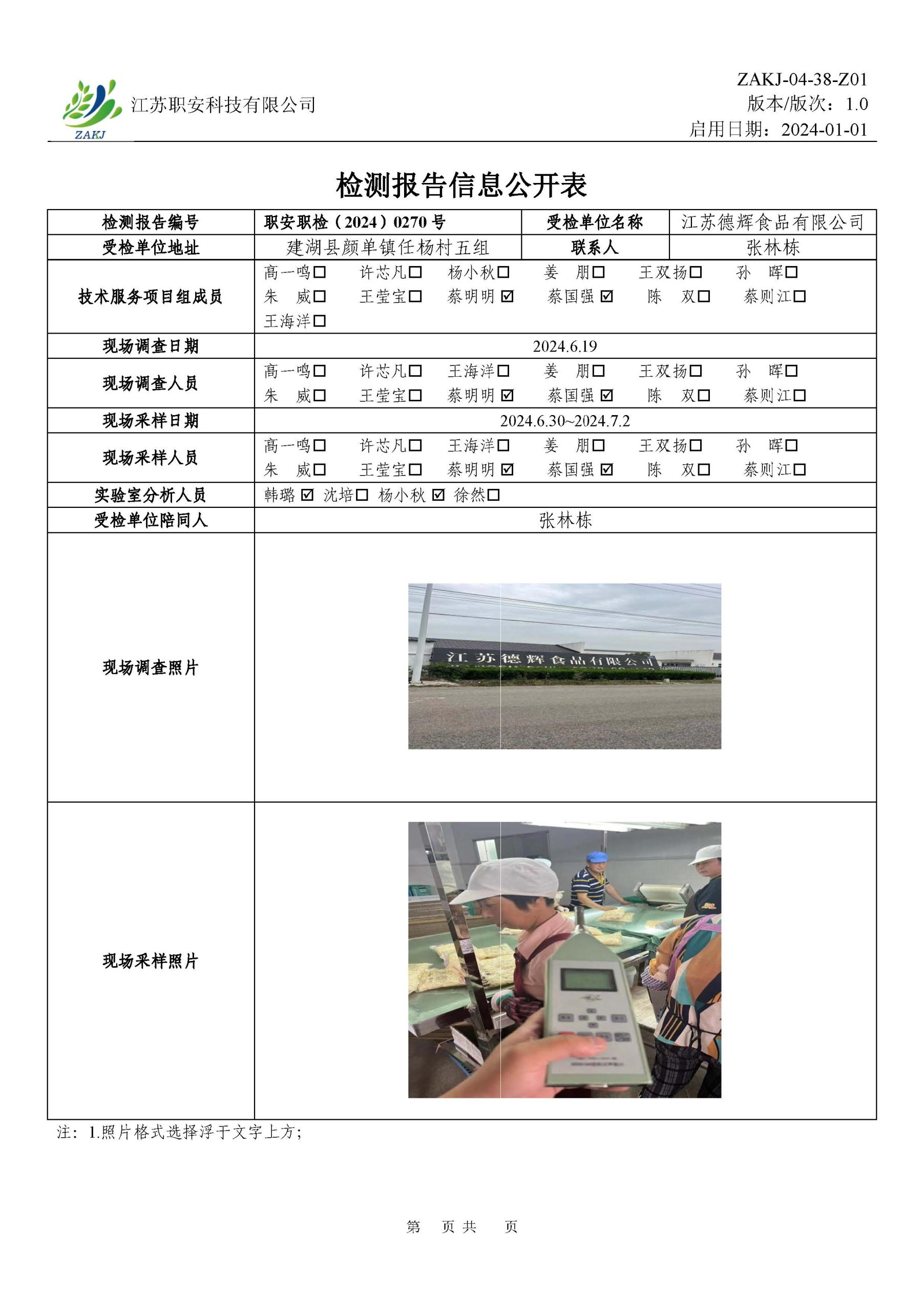 檢測報告公示