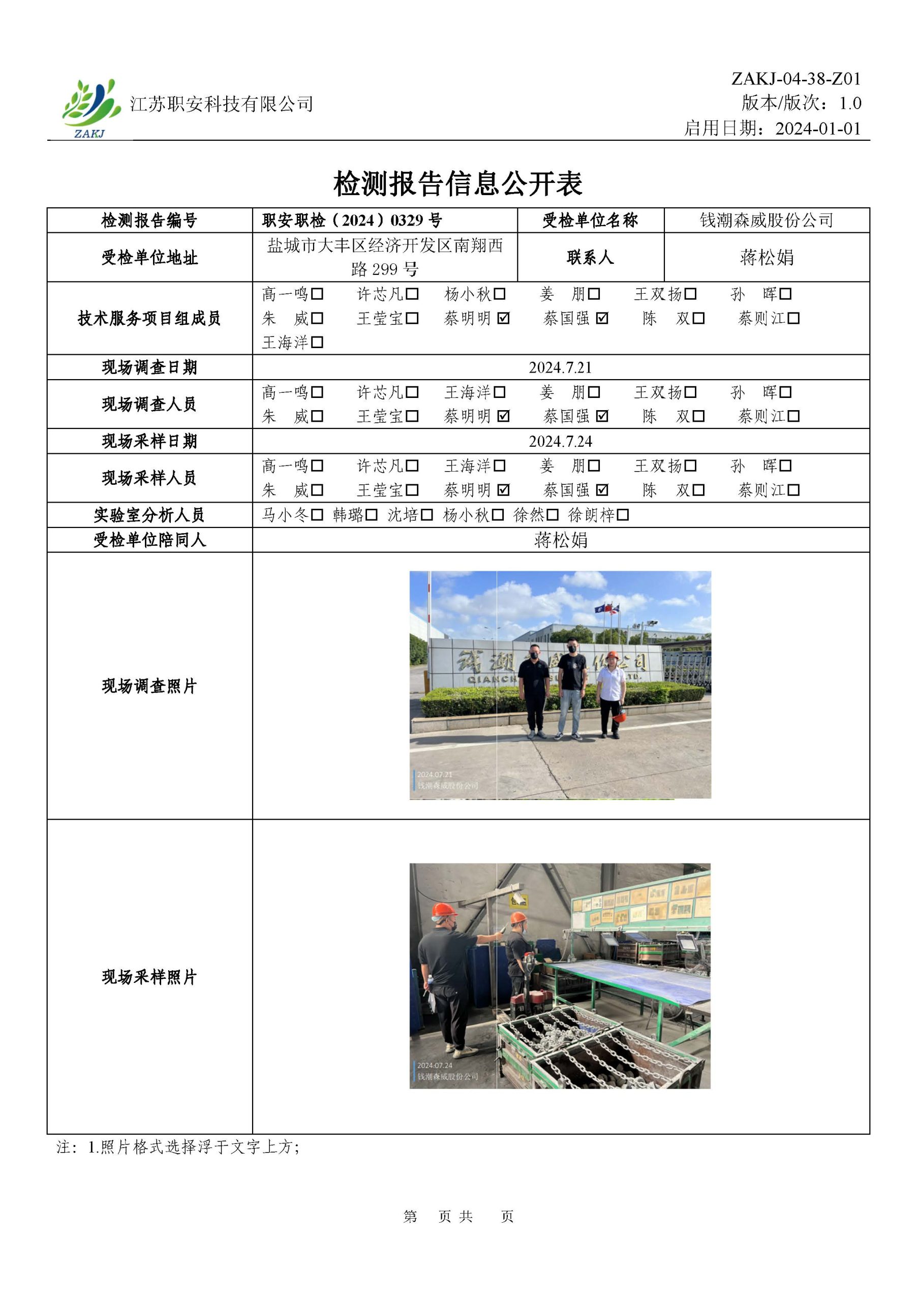 檢測報告公示