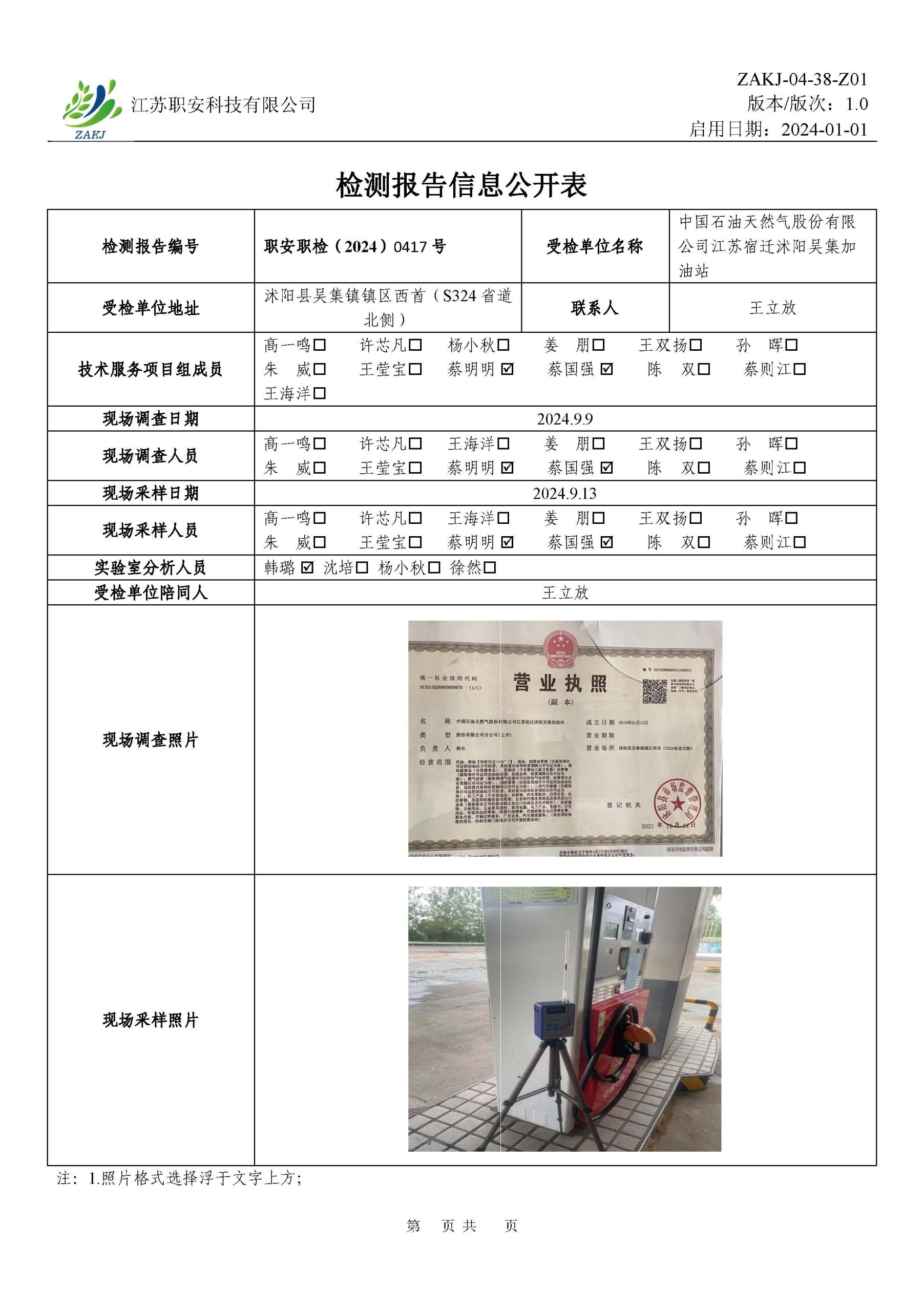 檢測報告公示