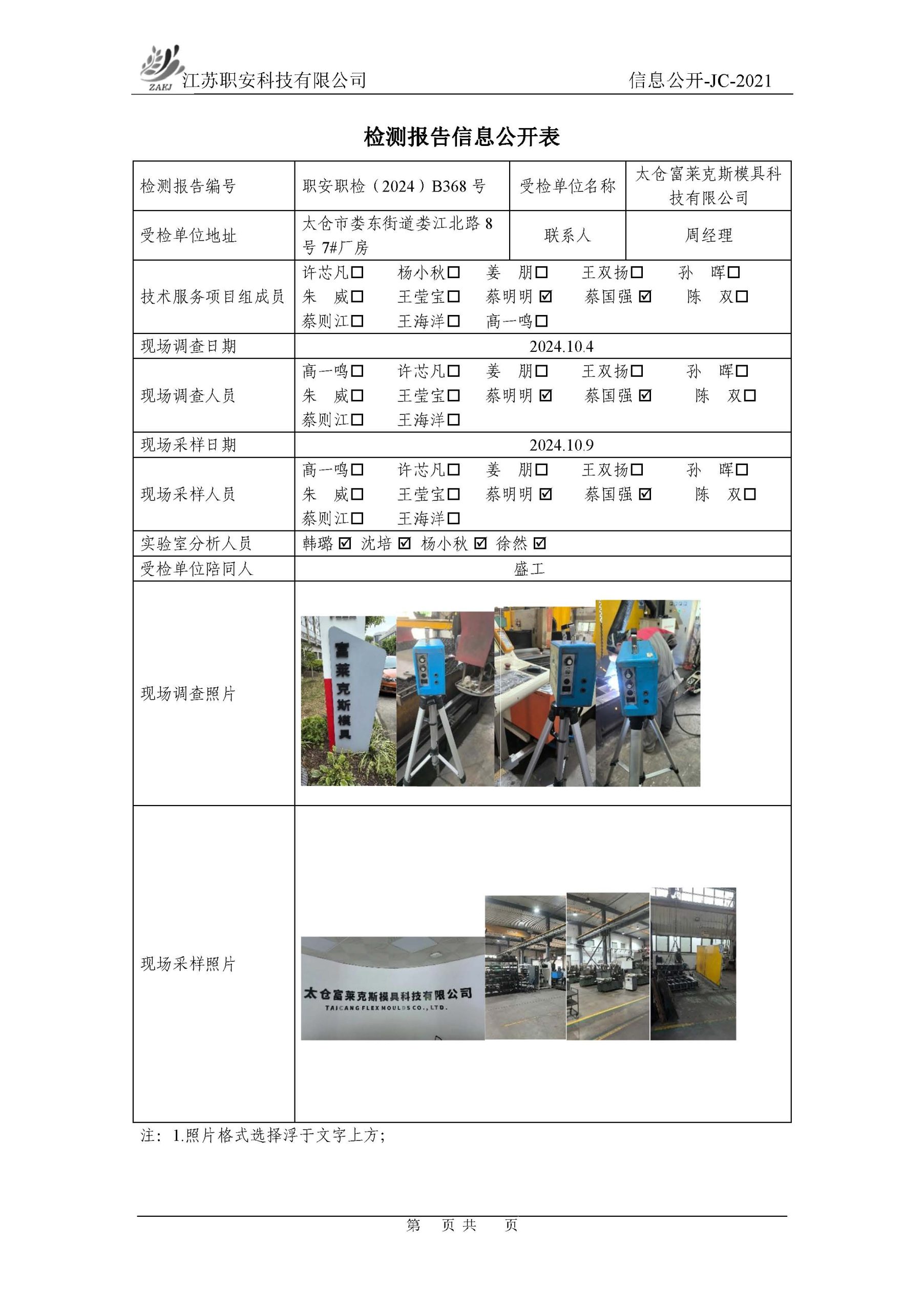 檢測報告公示