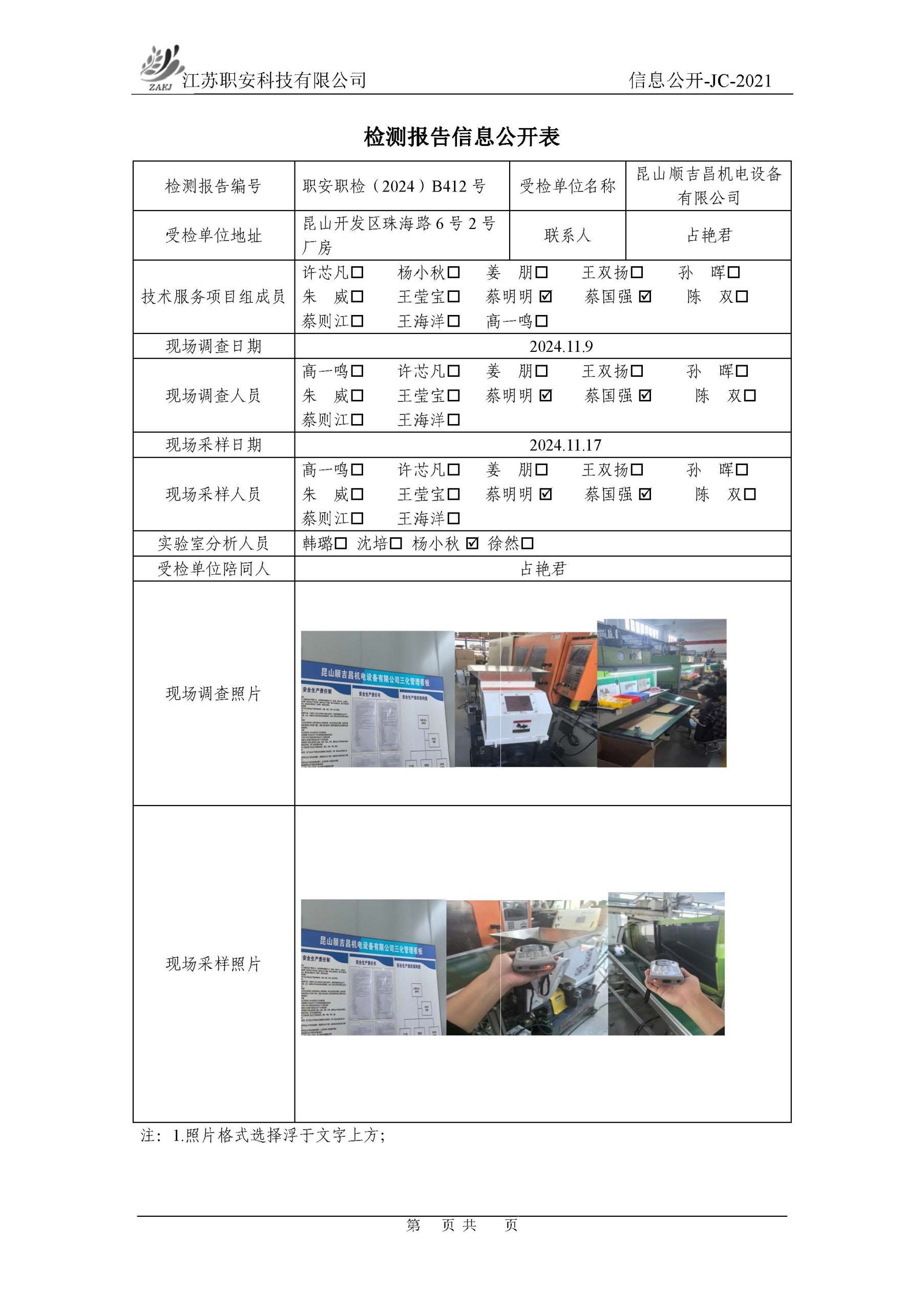 檢測報告公示
