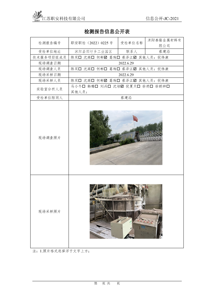 檢測報告公示