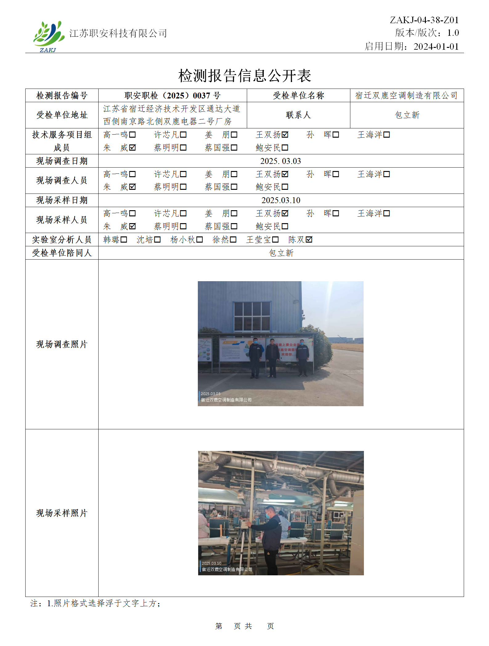 檢測報告公示