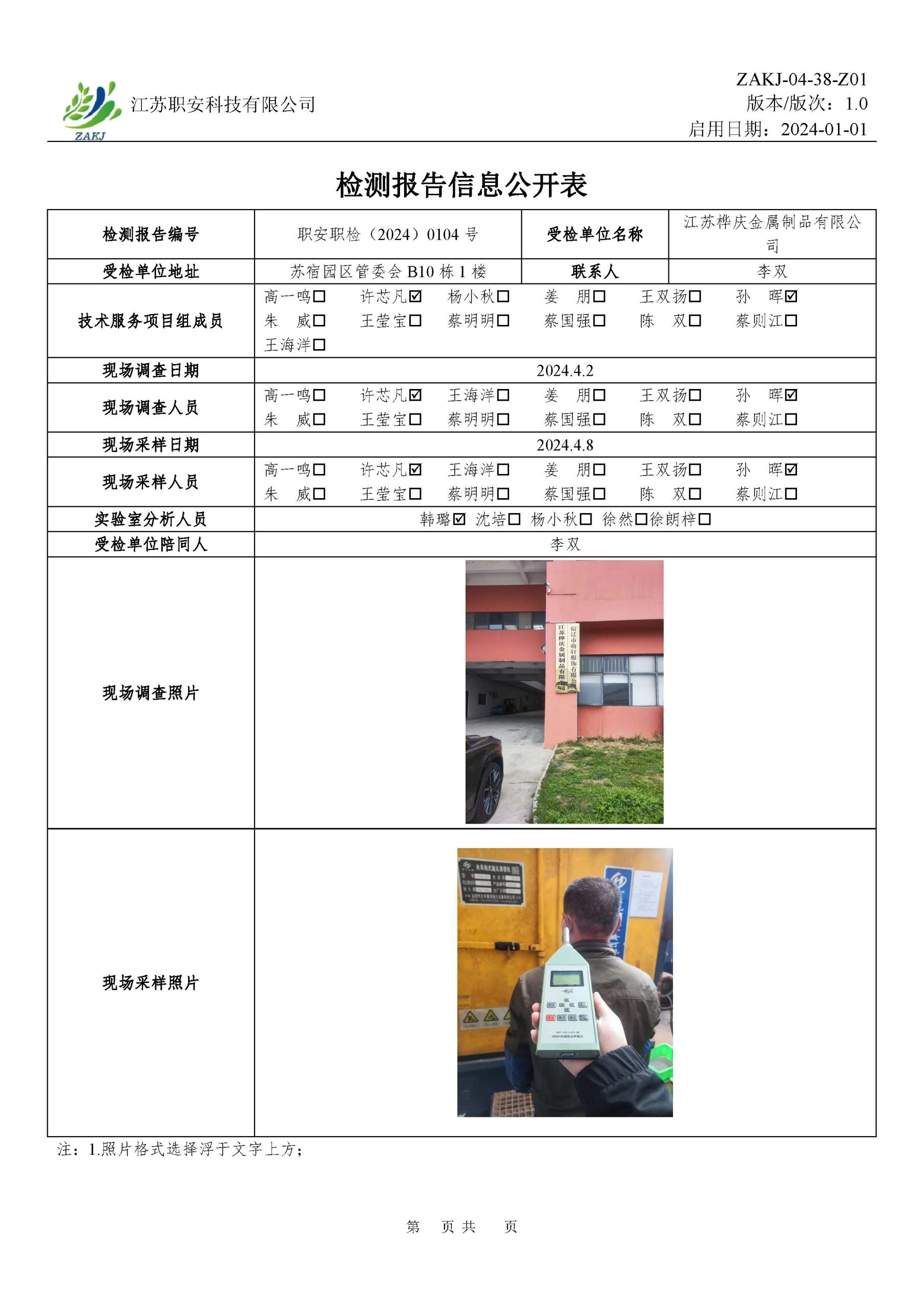 檢測報告公示