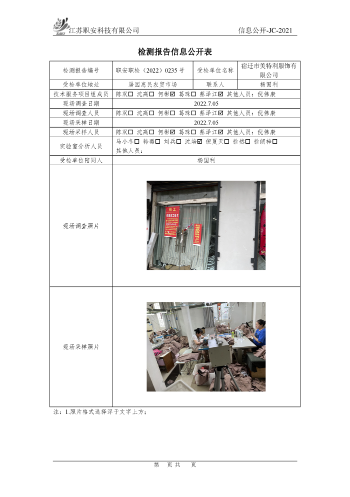 檢測報告公示