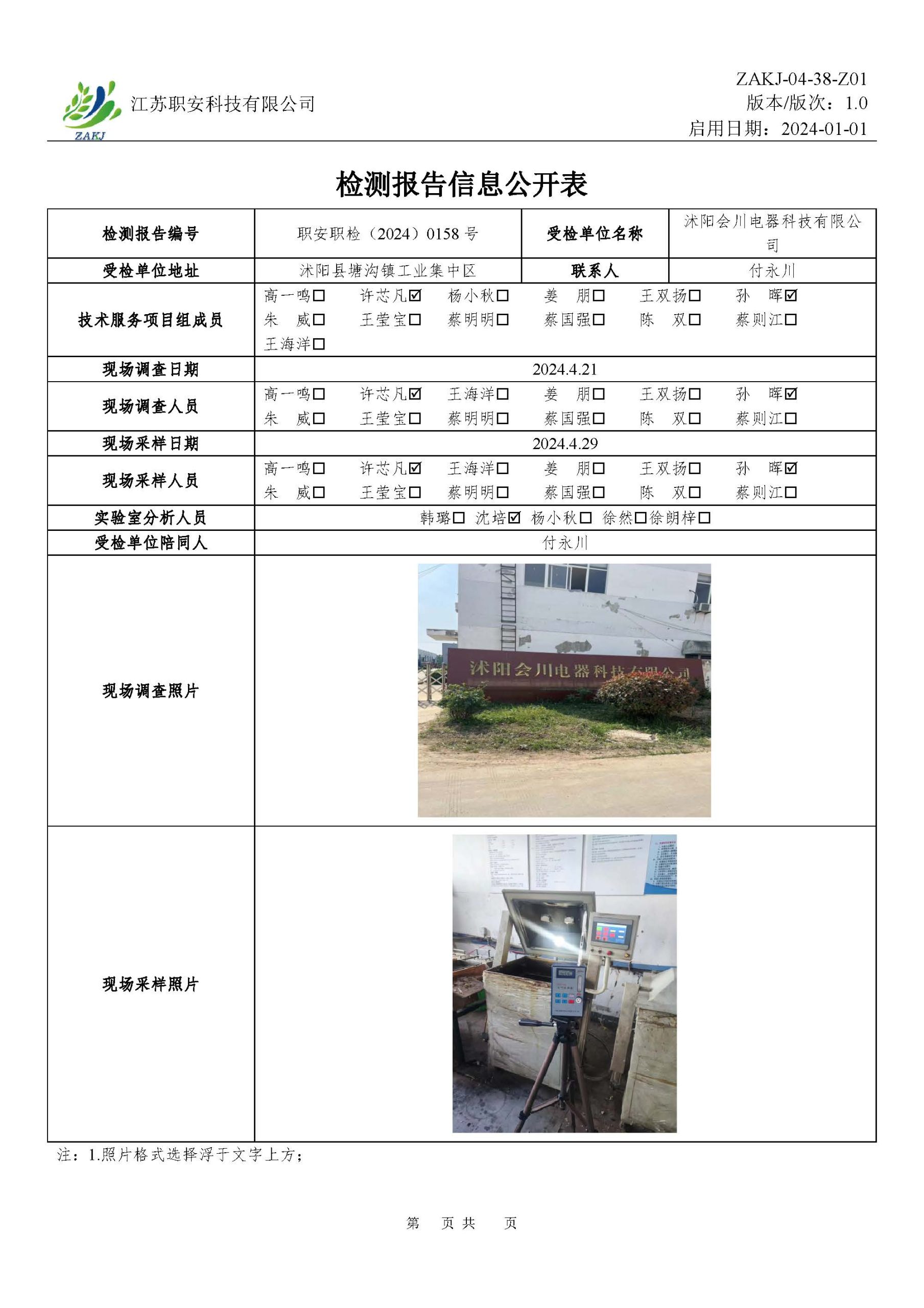 檢測報告公示