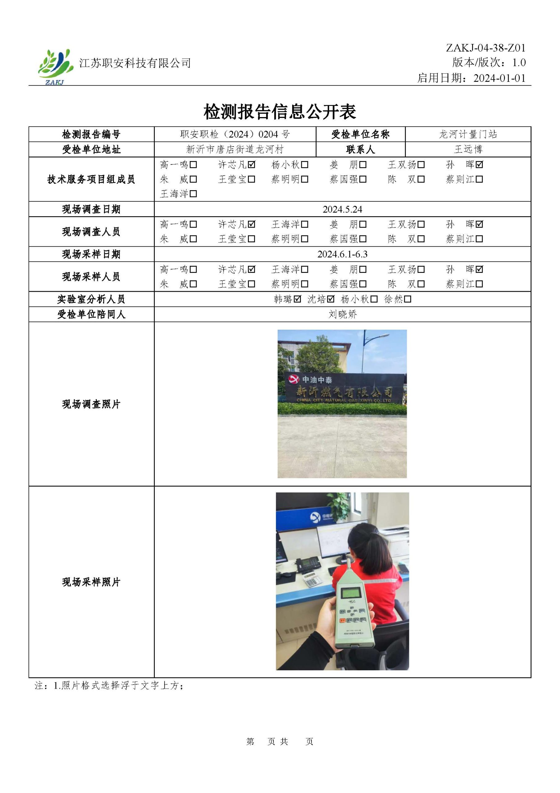 檢測報告公示