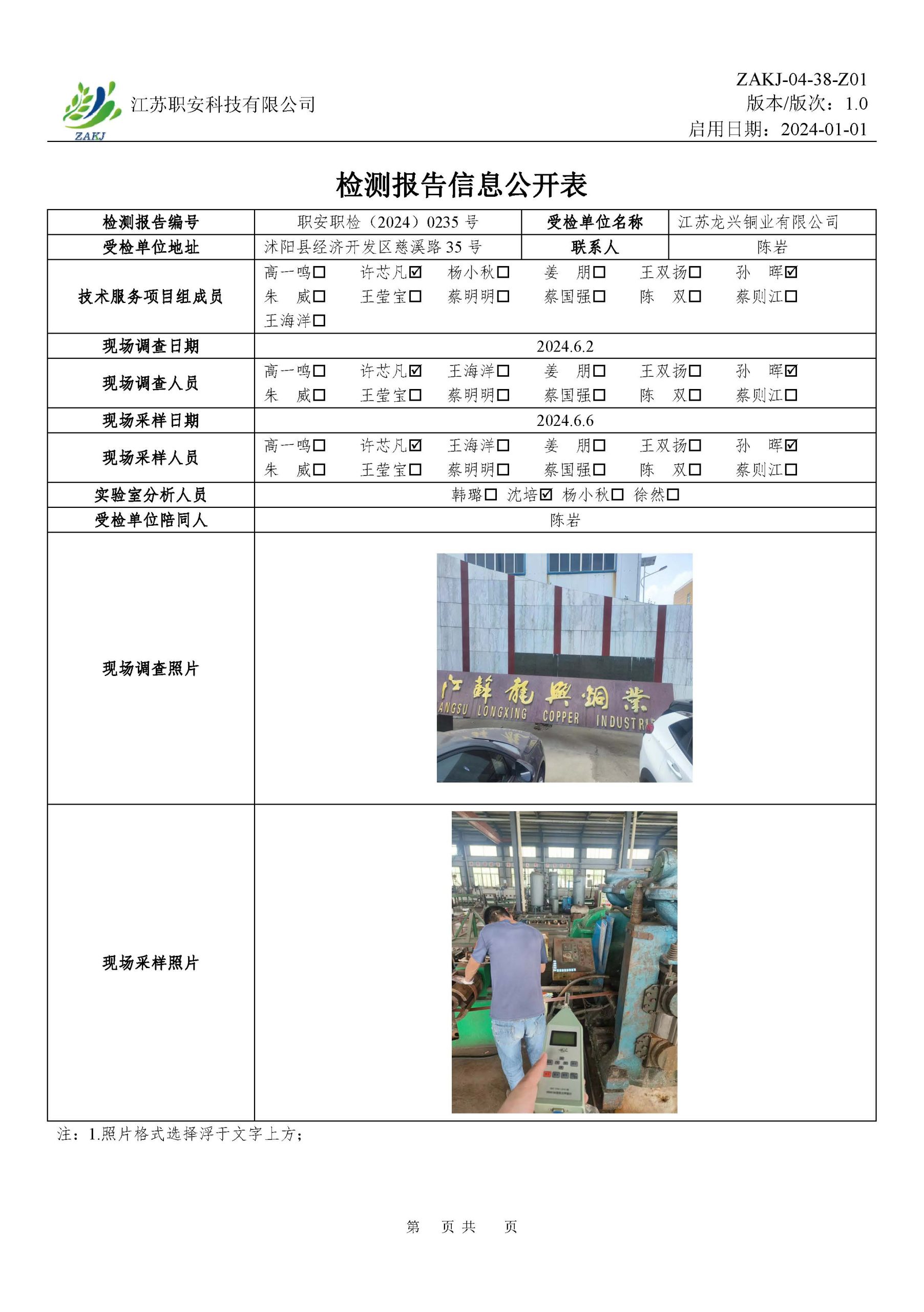 檢測報告公示