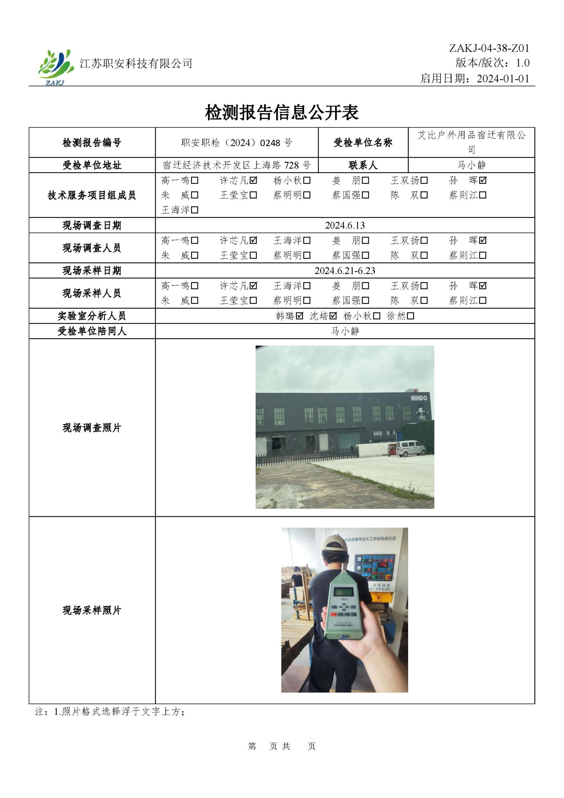 檢測報告公示